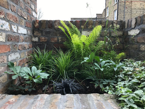 The textural planting provides a restful green backdrop within these courtyard spaces, with pockets of white flowers punctuating the green foliage and bringing light to the most shaded areas.